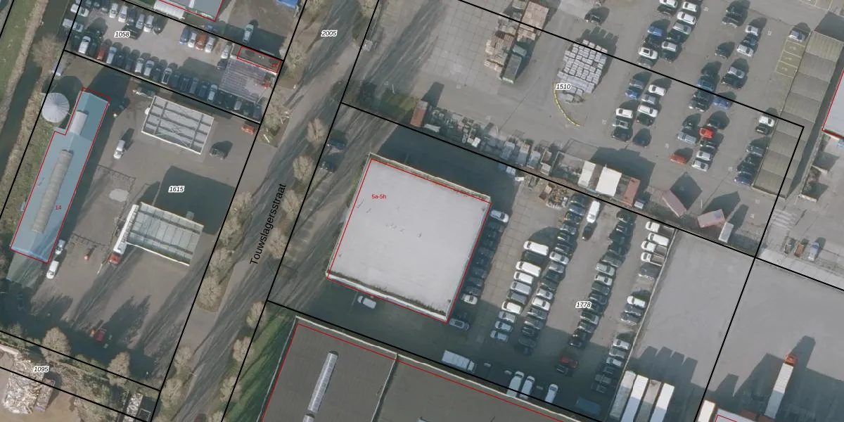 Het perceel waarop Touwslagersstraat 5-b staat heeft een oppervlakte van 5205 m². Dit is een zeer groot perceel. De perceeloppervlakte wordt geregistreerd door het Kadaster. Gedetailleerde informatie over de maten van dit perceel kunt u vinden in het rapport Kadastrale kaart met maatvoering van Touwslagersstraat 5-b.