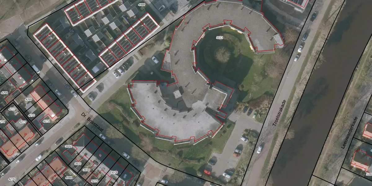 Troelstrakade 22-039 is gelegen op kadastraal perceel SNE00A5511. Deze kadastrale aanduiding is uniek en wordt gebruikt door het Kadaster om eigendomsrechten en andere zakelijke rechten vast te leggen. Het perceel maakt onderdeel uit van de kadastrale gemeente Sneek.