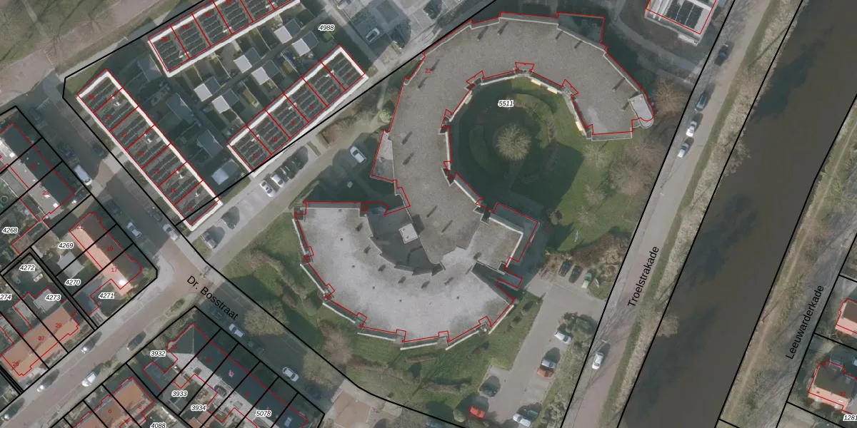 Troelstrakade 22-035 is gelegen op kadastraal perceel SNE00A5511. Deze kadastrale aanduiding is uniek en wordt gebruikt door het Kadaster om eigendomsrechten en andere zakelijke rechten vast te leggen. Het perceel maakt onderdeel uit van de kadastrale gemeente Sneek.