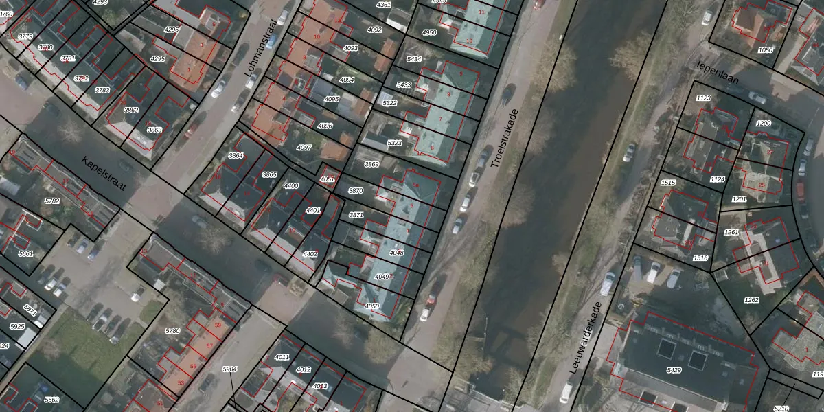 Troelstrakade 5 is gelegen op kadastraal perceel SNE00A3870. Deze kadastrale aanduiding is uniek en wordt gebruikt door het Kadaster om eigendomsrechten en andere zakelijke rechten vast te leggen. Het perceel maakt onderdeel uit van de kadastrale gemeente Sneek.