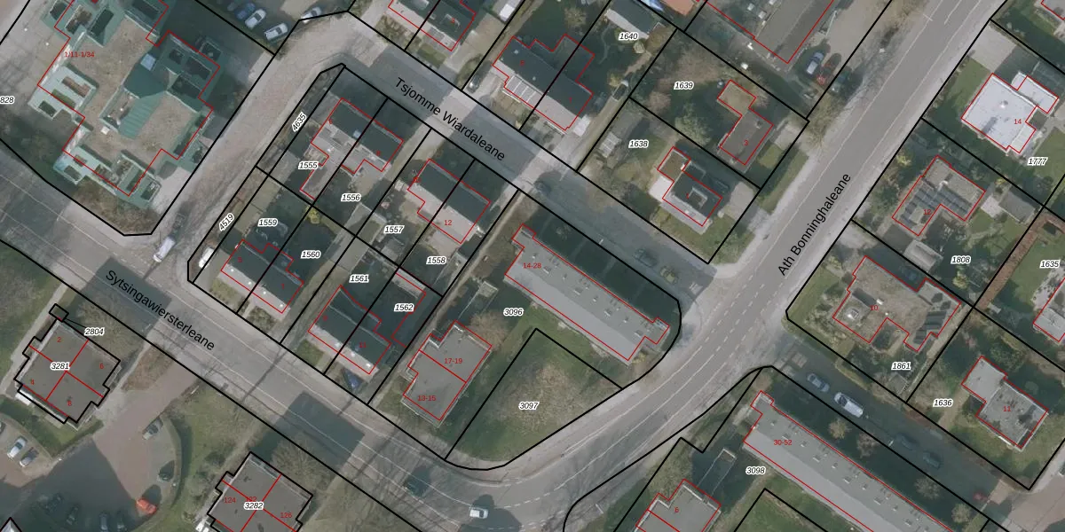 Tsjomme Wiardaleane 14 is gelegen op kadastraal perceel SNE00D3096. Deze kadastrale aanduiding is uniek en wordt gebruikt door het Kadaster om eigendomsrechten en andere zakelijke rechten vast te leggen. Het perceel maakt onderdeel uit van de kadastrale gemeente Sneek.