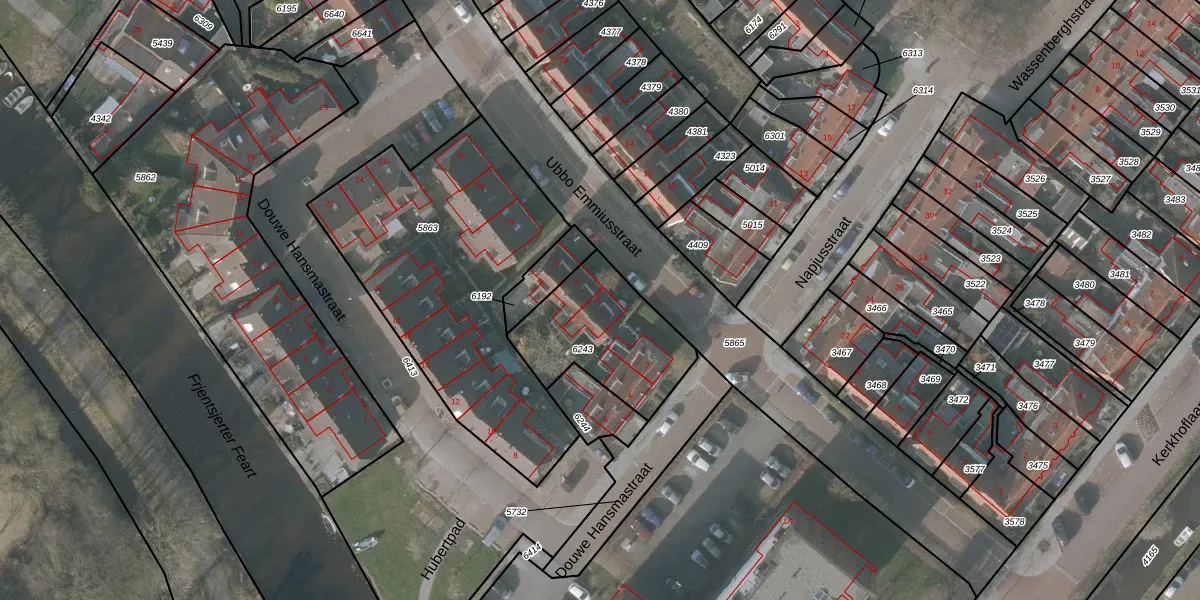 Ubbo Emmiusstraat 1 is gelegen op kadastraal perceel SNE00A6243. Deze kadastrale aanduiding is uniek en wordt gebruikt door het Kadaster om eigendomsrechten en andere zakelijke rechten vast te leggen. Het perceel maakt onderdeel uit van de kadastrale gemeente Sneek.