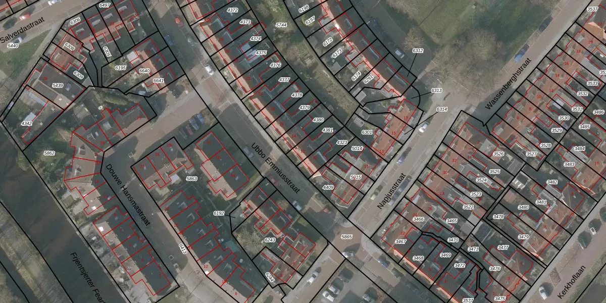 Ubbo Emmiusstraat 12 is gelegen op kadastraal perceel SNE00A4381. Deze kadastrale aanduiding is uniek en wordt gebruikt door het Kadaster om eigendomsrechten en andere zakelijke rechten vast te leggen. Het perceel maakt onderdeel uit van de kadastrale gemeente Sneek.