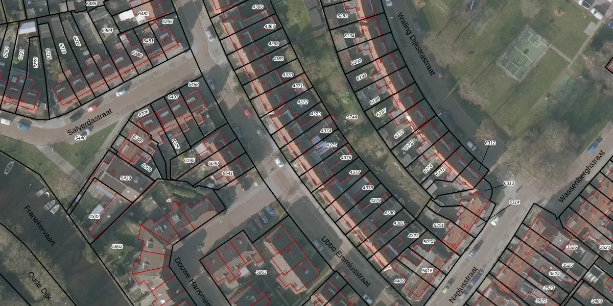 Ubbo Emmiusstraat 24 is gelegen op kadastraal perceel SNE00A4375. Deze kadastrale aanduiding is uniek en wordt gebruikt door het Kadaster om eigendomsrechten en andere zakelijke rechten vast te leggen. Het perceel maakt onderdeel uit van de kadastrale gemeente Sneek.