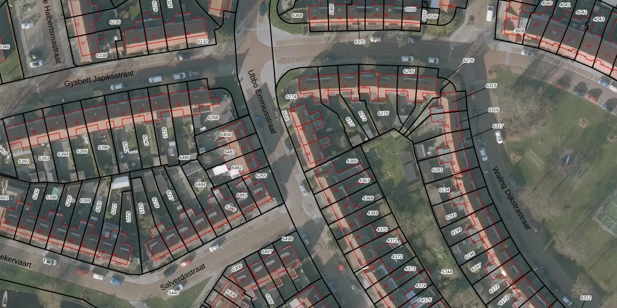Het perceel waarop Ubbo Emmiusstraat 44 staat heeft een oppervlakte van 490 m². Dit is een groot perceel. De perceeloppervlakte wordt geregistreerd door het Kadaster. Gedetailleerde informatie over de maten van dit perceel kunt u vinden in het rapport Kadastrale kaart met maatvoering van Ubbo Emmiusstraat 44.