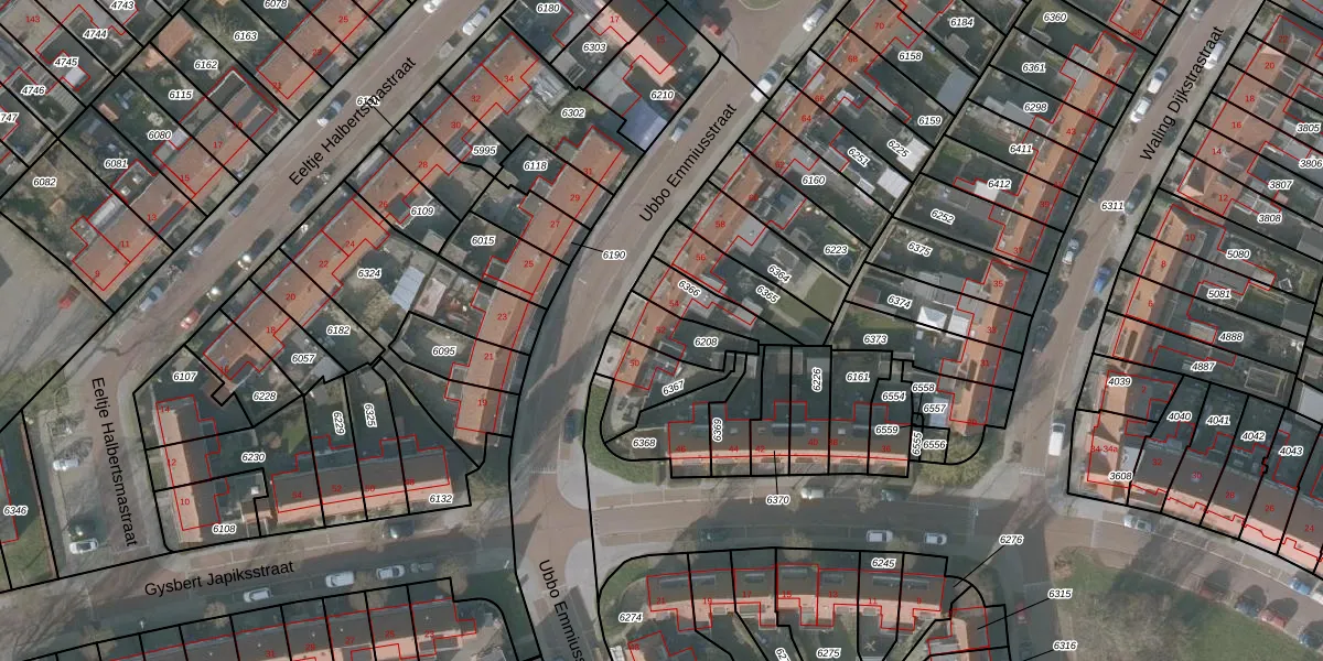 Ubbo Emmiusstraat 52 is gelegen op kadastraal perceel SNE00A6208. Deze kadastrale aanduiding is uniek en wordt gebruikt door het Kadaster om eigendomsrechten en andere zakelijke rechten vast te leggen. Het perceel maakt onderdeel uit van de kadastrale gemeente Sneek.