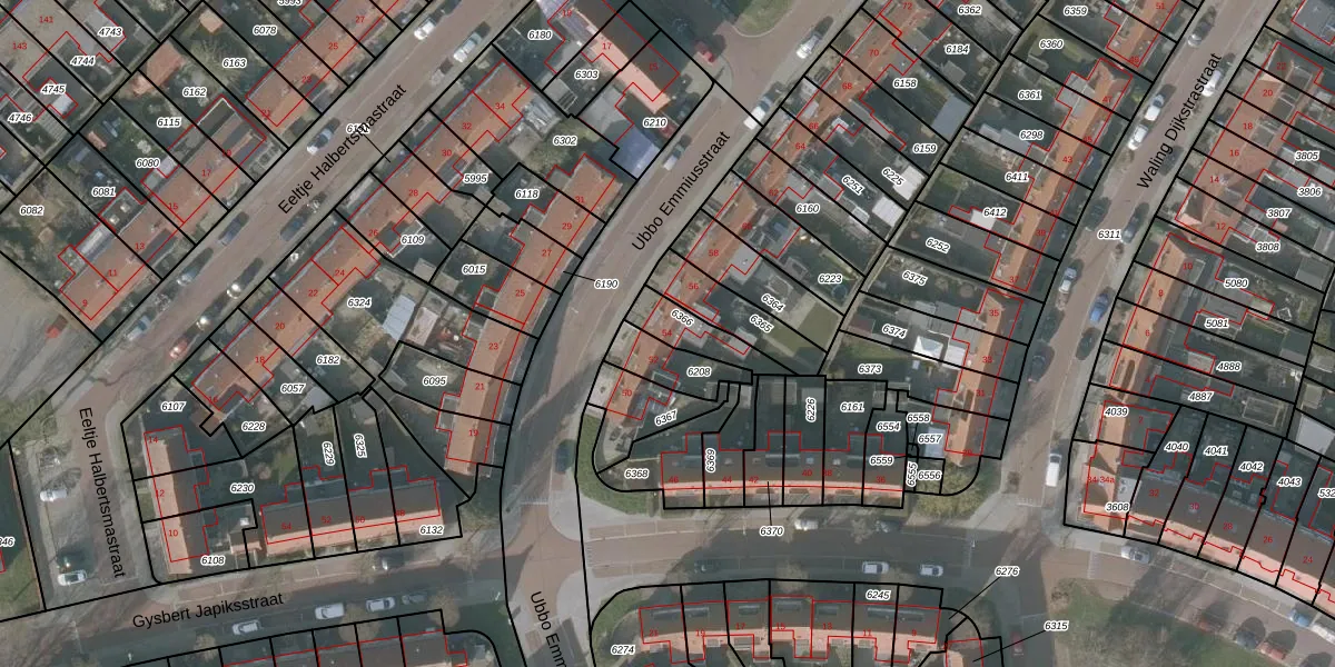 Ubbo Emmiusstraat 54 is gelegen op kadastraal perceel SNE00A6366. Deze kadastrale aanduiding is uniek en wordt gebruikt door het Kadaster om eigendomsrechten en andere zakelijke rechten vast te leggen. Het perceel maakt onderdeel uit van de kadastrale gemeente Sneek.