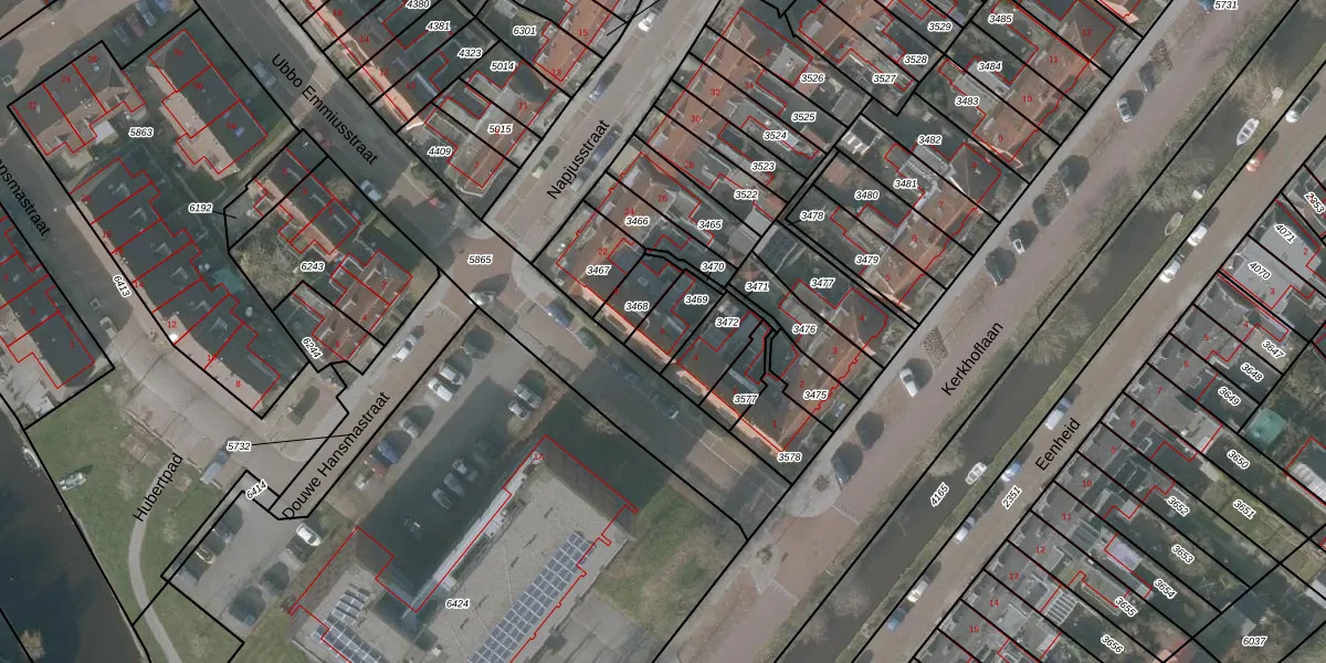 Ubbo Emmiusstraat 6 is gelegen op kadastraal perceel SNE00A3469. Deze kadastrale aanduiding is uniek en wordt gebruikt door het Kadaster om eigendomsrechten en andere zakelijke rechten vast te leggen. Het perceel maakt onderdeel uit van de kadastrale gemeente Sneek.