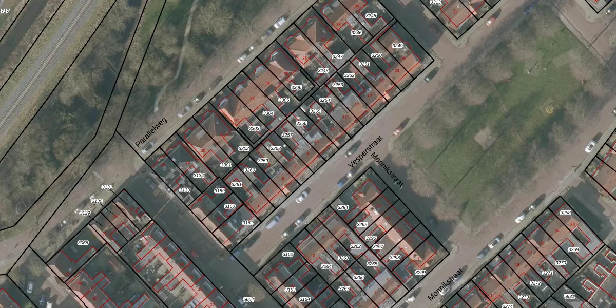 Het perceel waarop Vesperstraat 9 staat heeft een oppervlakte van 106 m². Dit is een middelgroot perceel. De perceeloppervlakte wordt geregistreerd door het Kadaster. Gedetailleerde informatie over de maten van dit perceel kunt u vinden in het rapport Kadastrale kaart met maatvoering van Vesperstraat 9.