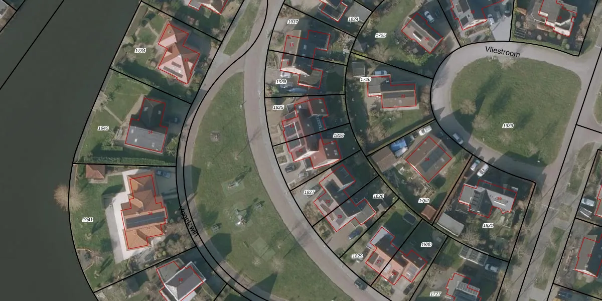 Het perceel waarop Vogelzwin 21 staat heeft een oppervlakte van 347 m². Dit is een groot perceel. De perceeloppervlakte wordt geregistreerd door het Kadaster. Gedetailleerde informatie over de maten van dit perceel kunt u vinden in het rapport Kadastrale kaart met maatvoering van Vogelzwin 21.