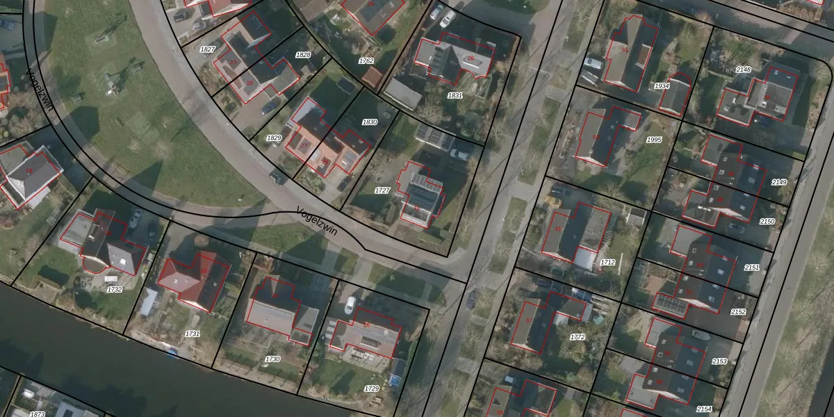 Het perceel waarop Vogelzwin 31 staat heeft een oppervlakte van 706 m². Dit is een groot perceel. De perceeloppervlakte wordt geregistreerd door het Kadaster. Gedetailleerde informatie over de maten van dit perceel kunt u vinden in het rapport Kadastrale kaart met maatvoering van Vogelzwin 31.