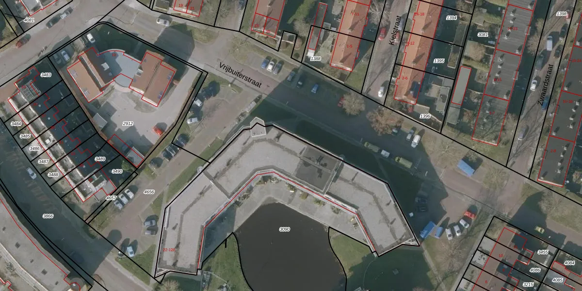 Vrijbuiterstraat 108 is gelegen op kadastraal perceel SNE00D3090. Deze kadastrale aanduiding is uniek en wordt gebruikt door het Kadaster om eigendomsrechten en andere zakelijke rechten vast te leggen. Het perceel maakt onderdeel uit van de kadastrale gemeente Sneek.