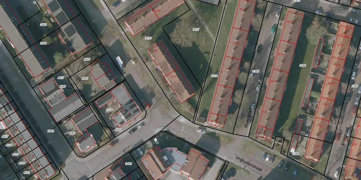 Vrijbuiterstraat 15 is gelegen op kadastraal perceel SNE00D3075. Deze kadastrale aanduiding is uniek en wordt gebruikt door het Kadaster om eigendomsrechten en andere zakelijke rechten vast te leggen. Het perceel maakt onderdeel uit van de kadastrale gemeente Sneek.