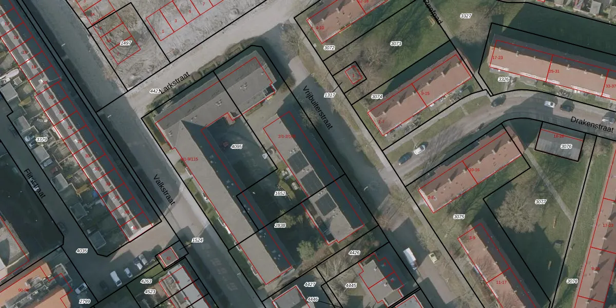 Het perceel waarop Vrijbuiterstraat 2-103 staat heeft een oppervlakte van 1116 m². Dit is een zeer groot perceel. De perceeloppervlakte wordt geregistreerd door het Kadaster. Gedetailleerde informatie over de maten van dit perceel kunt u vinden in het rapport Kadastrale kaart met maatvoering van Vrijbuiterstraat 2-103.