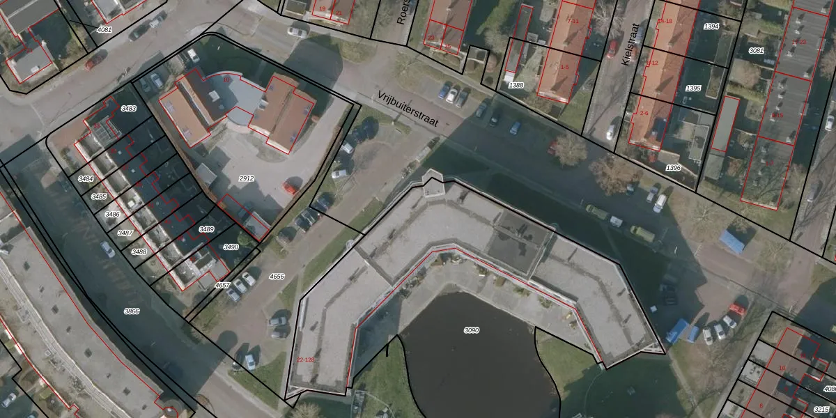Vrijbuiterstraat 48 is gelegen op kadastraal perceel SNE00D3090. Deze kadastrale aanduiding is uniek en wordt gebruikt door het Kadaster om eigendomsrechten en andere zakelijke rechten vast te leggen. Het perceel maakt onderdeel uit van de kadastrale gemeente Sneek.