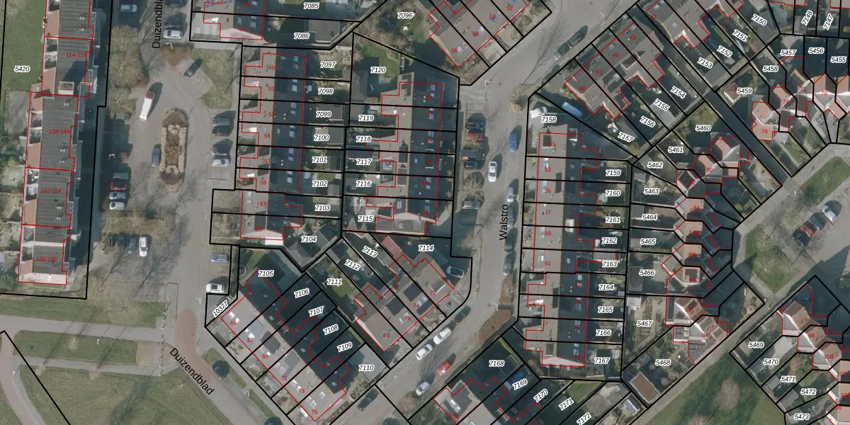 Het perceel waarop Walstro 70 staat heeft een oppervlakte van 224 m². Dit is een middelgroot perceel. De perceeloppervlakte wordt geregistreerd door het Kadaster. Gedetailleerde informatie over de maten van dit perceel kunt u vinden in het rapport Kadastrale kaart met maatvoering van Walstro 70.
