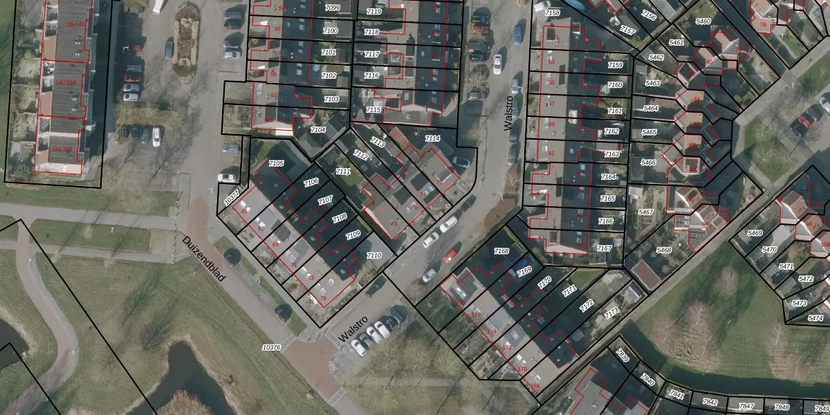 Het perceel waarop Walstro 76 staat heeft een oppervlakte van 166 m². Dit is een middelgroot perceel. De perceeloppervlakte wordt geregistreerd door het Kadaster. Gedetailleerde informatie over de maten van dit perceel kunt u vinden in het rapport Kadastrale kaart met maatvoering van Walstro 76.