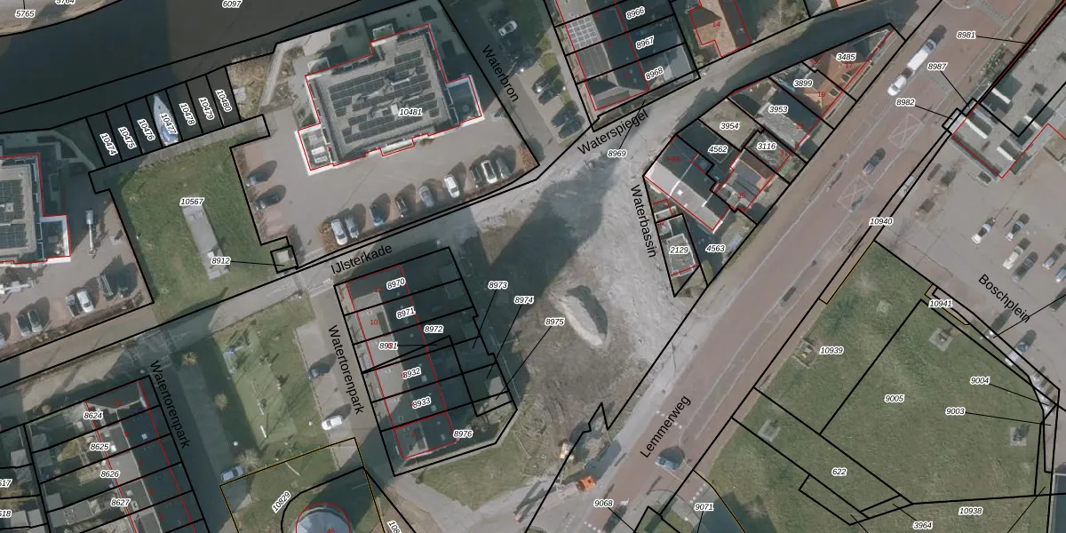 Het perceel waarop Waterbassin 7 staat heeft een oppervlakte van 1,1 ha. Dit is een zeer groot perceel. De perceeloppervlakte wordt geregistreerd door het Kadaster. Gedetailleerde informatie over de maten van dit perceel kunt u vinden in het rapport Kadastrale kaart met maatvoering van Waterbassin 7.