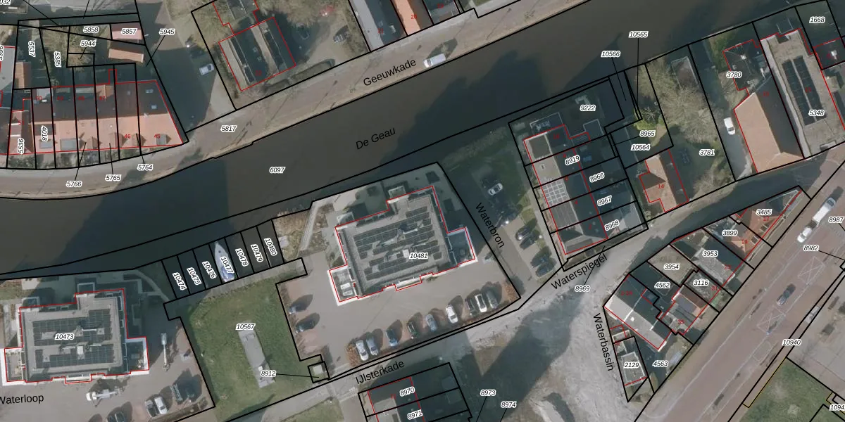 Waterbron 1-001 is gelegen op kadastraal perceel SNE00C10481. Deze kadastrale aanduiding is uniek en wordt gebruikt door het Kadaster om eigendomsrechten en andere zakelijke rechten vast te leggen. Het perceel maakt onderdeel uit van de kadastrale gemeente Sneek.