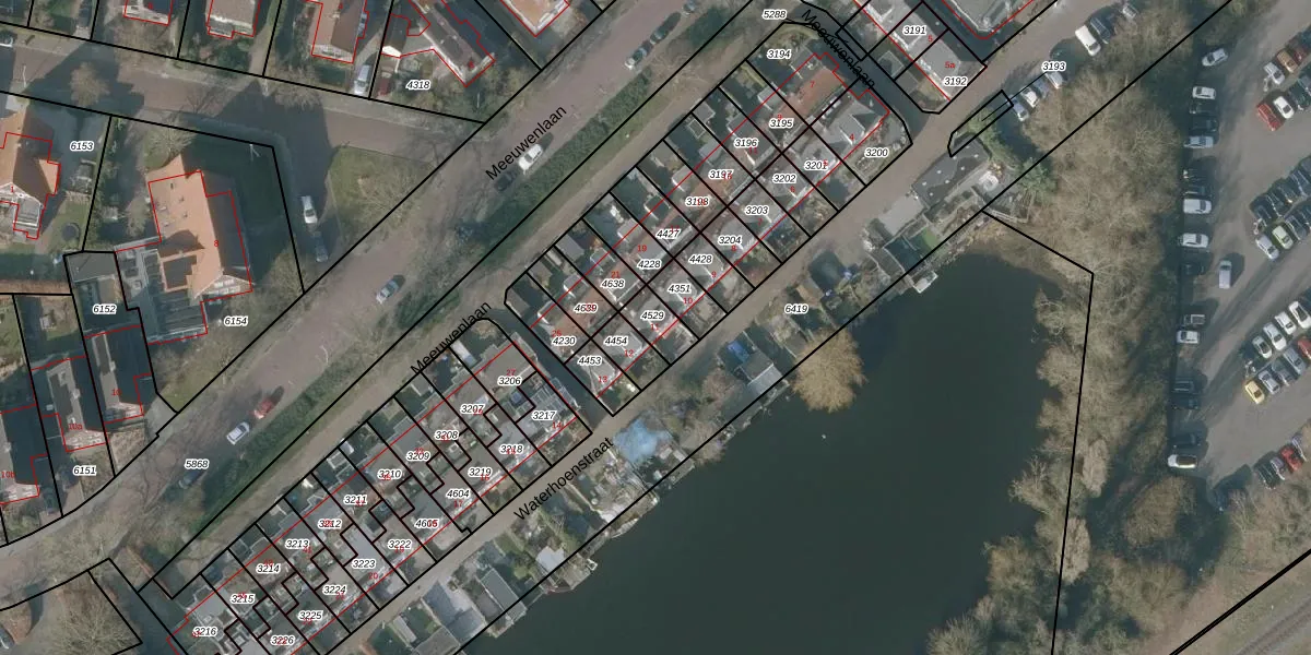 Gebruik de zoekbalk of klik op een perceel voor informatie over de adressen binnen dit perceel.
