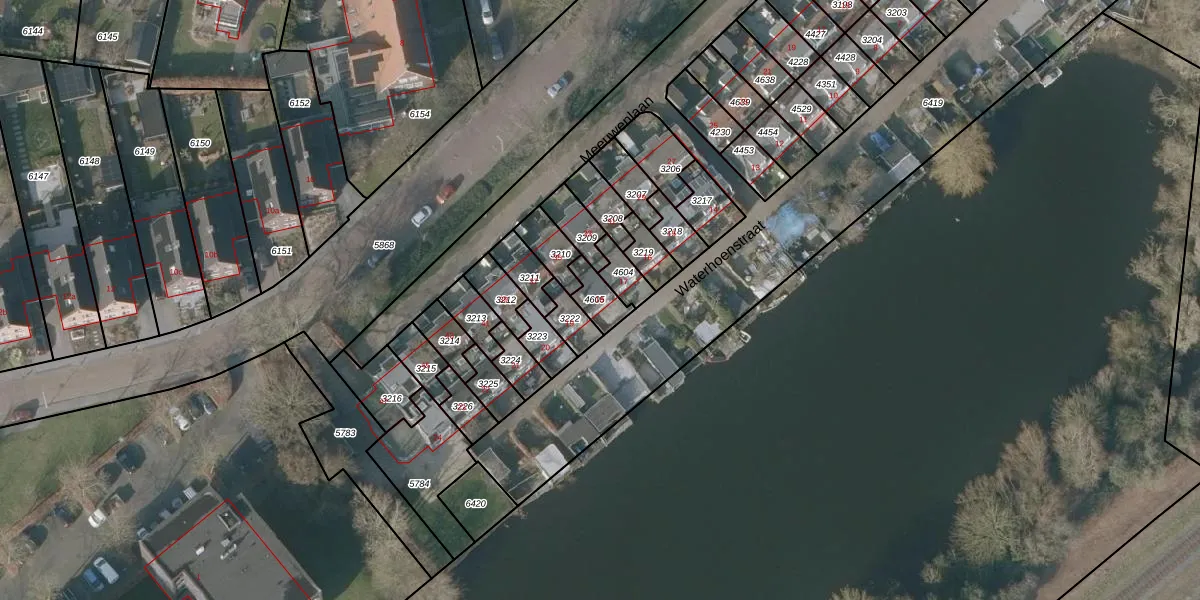 Gebruik de zoekbalk of klik op een perceel voor informatie over de adressen binnen dit perceel.