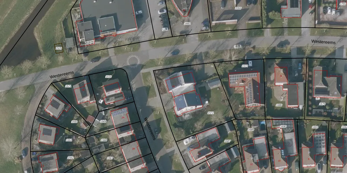 Westereems 15 is gelegen op kadastraal perceel SNE00E1572. Deze kadastrale aanduiding is uniek en wordt gebruikt door het Kadaster om eigendomsrechten en andere zakelijke rechten vast te leggen. Het perceel maakt onderdeel uit van de kadastrale gemeente Sneek.