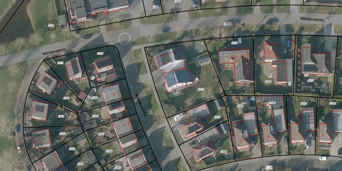 Het perceel waarop Westereems 17 staat heeft een oppervlakte van 1419 m². Dit is een zeer groot perceel. De perceeloppervlakte wordt geregistreerd door het Kadaster. Gedetailleerde informatie over de maten van dit perceel kunt u vinden in het rapport Kadastrale kaart met maatvoering van Westereems 17.