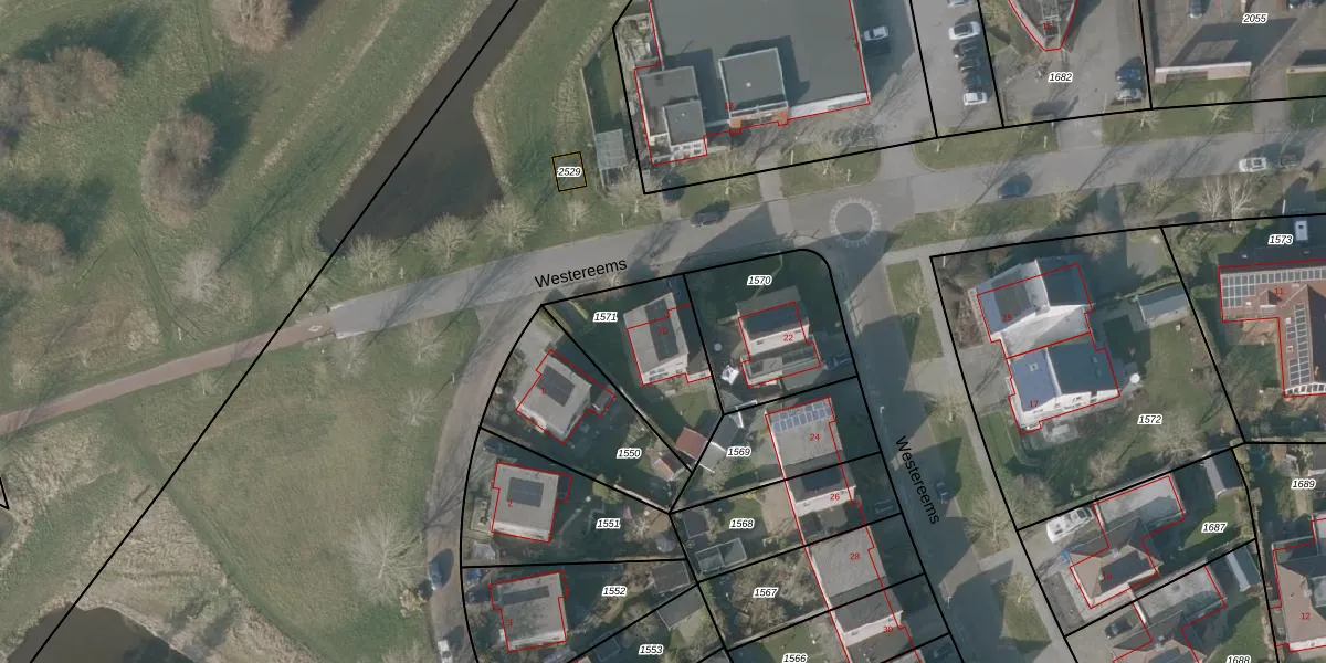 Westereems 20 is gelegen op kadastraal perceel SNE00E1571. Deze kadastrale aanduiding is uniek en wordt gebruikt door het Kadaster om eigendomsrechten en andere zakelijke rechten vast te leggen. Het perceel maakt onderdeel uit van de kadastrale gemeente Sneek.