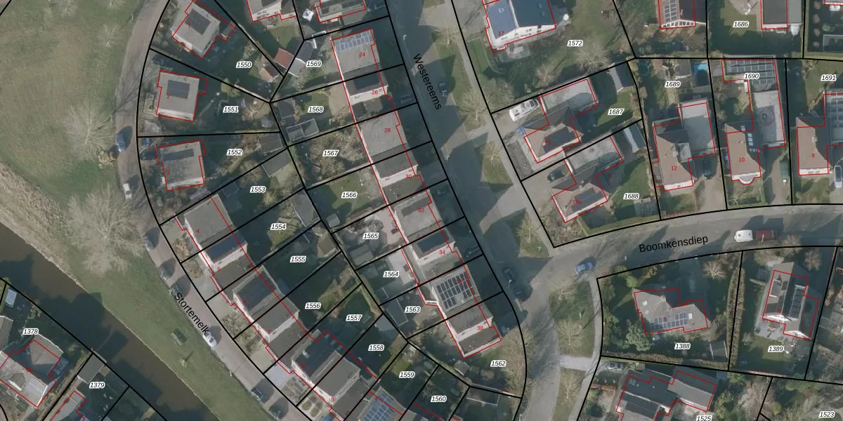 Westereems 32 is gelegen op kadastraal perceel SNE00E1565. Deze kadastrale aanduiding is uniek en wordt gebruikt door het Kadaster om eigendomsrechten en andere zakelijke rechten vast te leggen. Het perceel maakt onderdeel uit van de kadastrale gemeente Sneek.