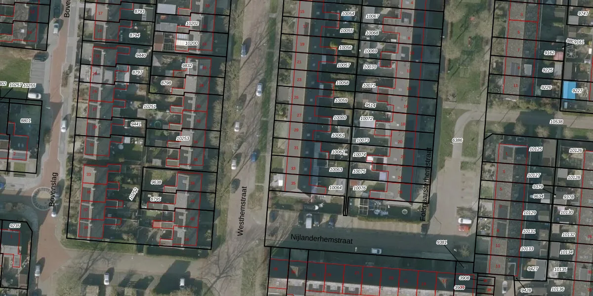 Gebruik de zoekbalk of klik op een perceel voor informatie over de adressen binnen dit perceel.