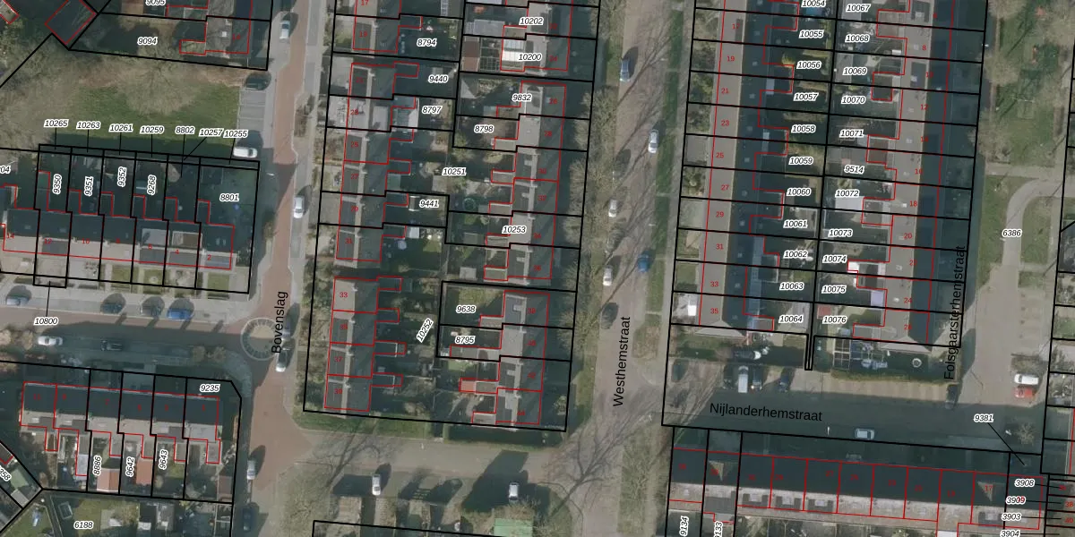 Het perceel waarop Westhemstraat 36 staat heeft een oppervlakte van 1354 m². Dit is een zeer groot perceel. De perceeloppervlakte wordt geregistreerd door het Kadaster. Gedetailleerde informatie over de maten van dit perceel kunt u vinden in het rapport Kadastrale kaart met maatvoering van Westhemstraat 36.