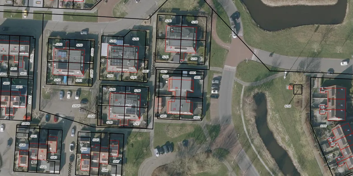 Het perceel waarop Wilgeroosje 16 staat heeft een oppervlakte van 163 m². Dit is een middelgroot perceel. De perceeloppervlakte wordt geregistreerd door het Kadaster. Gedetailleerde informatie over de maten van dit perceel kunt u vinden in het rapport Kadastrale kaart met maatvoering van Wilgeroosje 16.