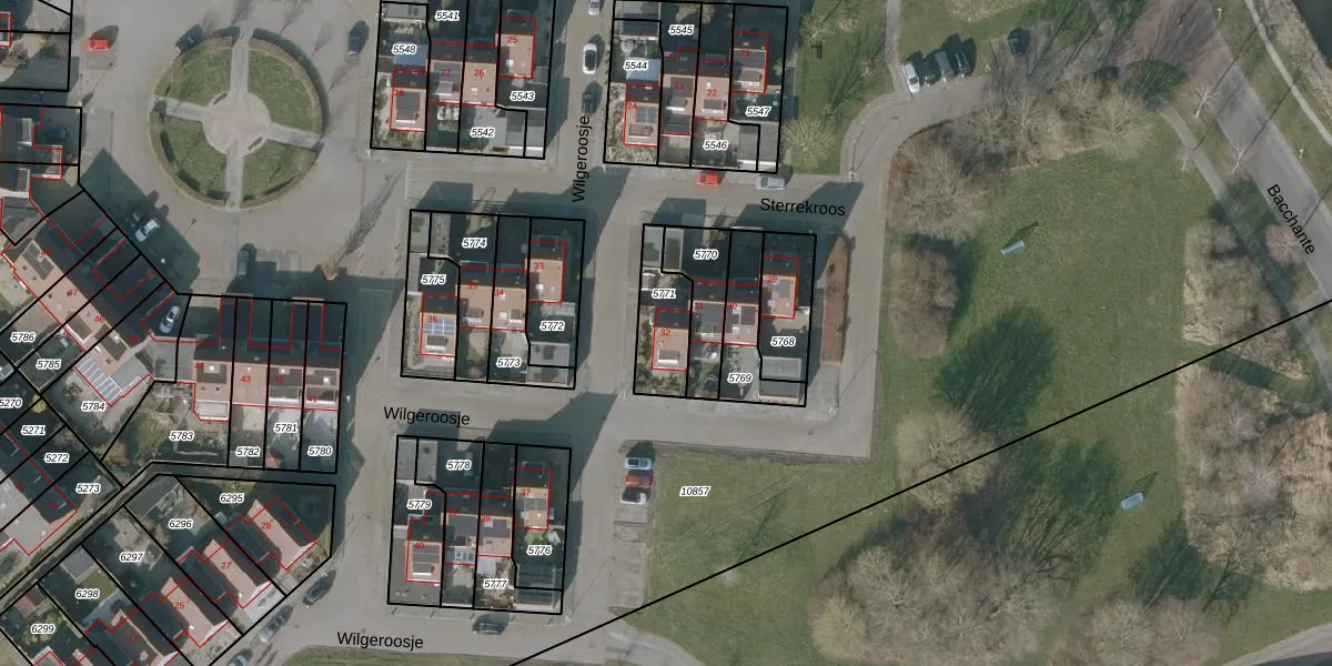 Het perceel waarop Wilgeroosje 32 staat heeft een oppervlakte van 166 m². Dit is een middelgroot perceel. De perceeloppervlakte wordt geregistreerd door het Kadaster. Gedetailleerde informatie over de maten van dit perceel kunt u vinden in het rapport Kadastrale kaart met maatvoering van Wilgeroosje 32.