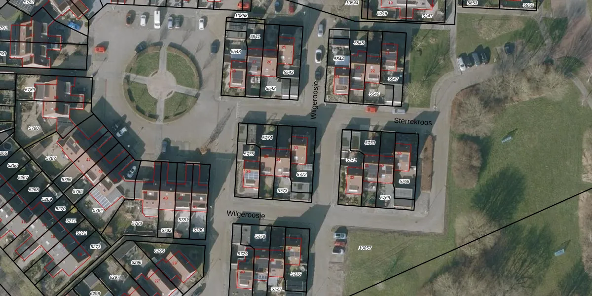 Wilgeroosje 33 is gelegen op kadastraal perceel SNE00C5772. Deze kadastrale aanduiding is uniek en wordt gebruikt door het Kadaster om eigendomsrechten en andere zakelijke rechten vast te leggen. Het perceel maakt onderdeel uit van de kadastrale gemeente Sneek.
