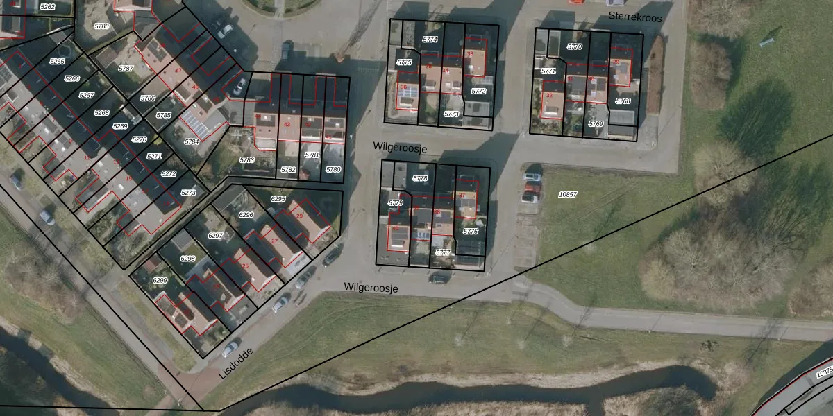 Het perceel waarop Wilgeroosje 39 staat heeft een oppervlakte van 163 m². Dit is een middelgroot perceel. De perceeloppervlakte wordt geregistreerd door het Kadaster. Gedetailleerde informatie over de maten van dit perceel kunt u vinden in het rapport Kadastrale kaart met maatvoering van Wilgeroosje 39.