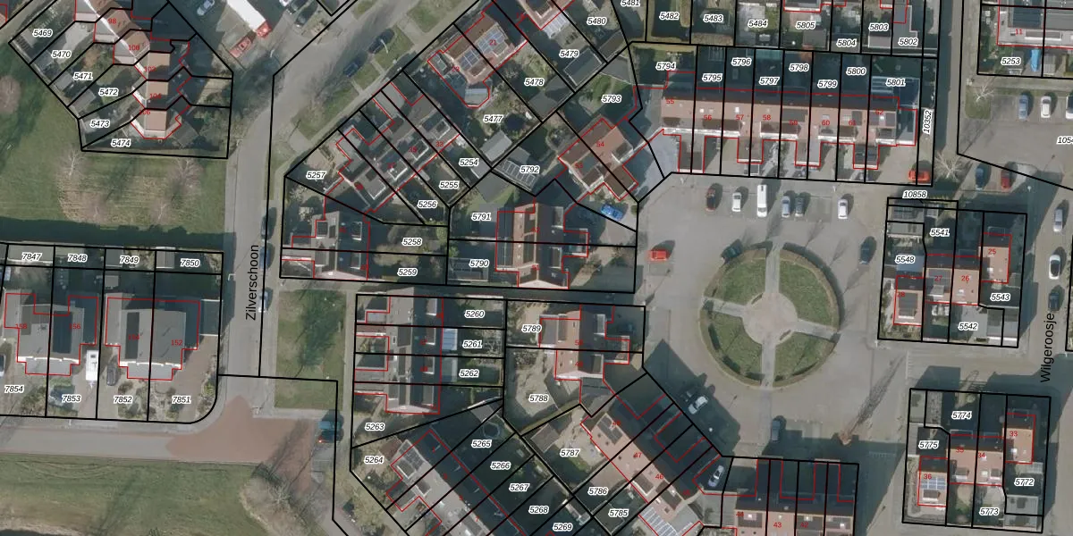 Gebruik de zoekbalk of klik op een perceel voor informatie over de adressen binnen dit perceel.