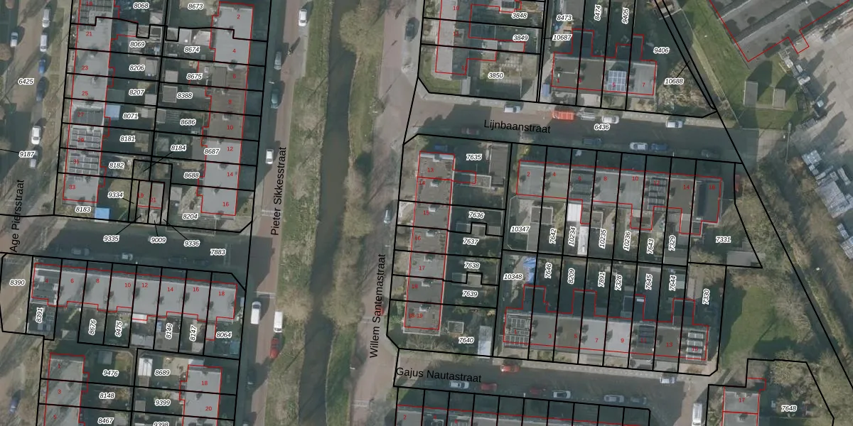 Willem Santemastraat 15 is gelegen op kadastraal perceel SNE00C7636. Deze kadastrale aanduiding is uniek en wordt gebruikt door het Kadaster om eigendomsrechten en andere zakelijke rechten vast te leggen. Het perceel maakt onderdeel uit van de kadastrale gemeente Sneek.