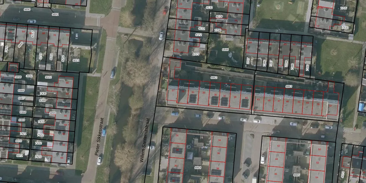 Willem Santemastraat 29 is gelegen op kadastraal perceel SNE00C8862. Deze kadastrale aanduiding is uniek en wordt gebruikt door het Kadaster om eigendomsrechten en andere zakelijke rechten vast te leggen. Het perceel maakt onderdeel uit van de kadastrale gemeente Sneek.