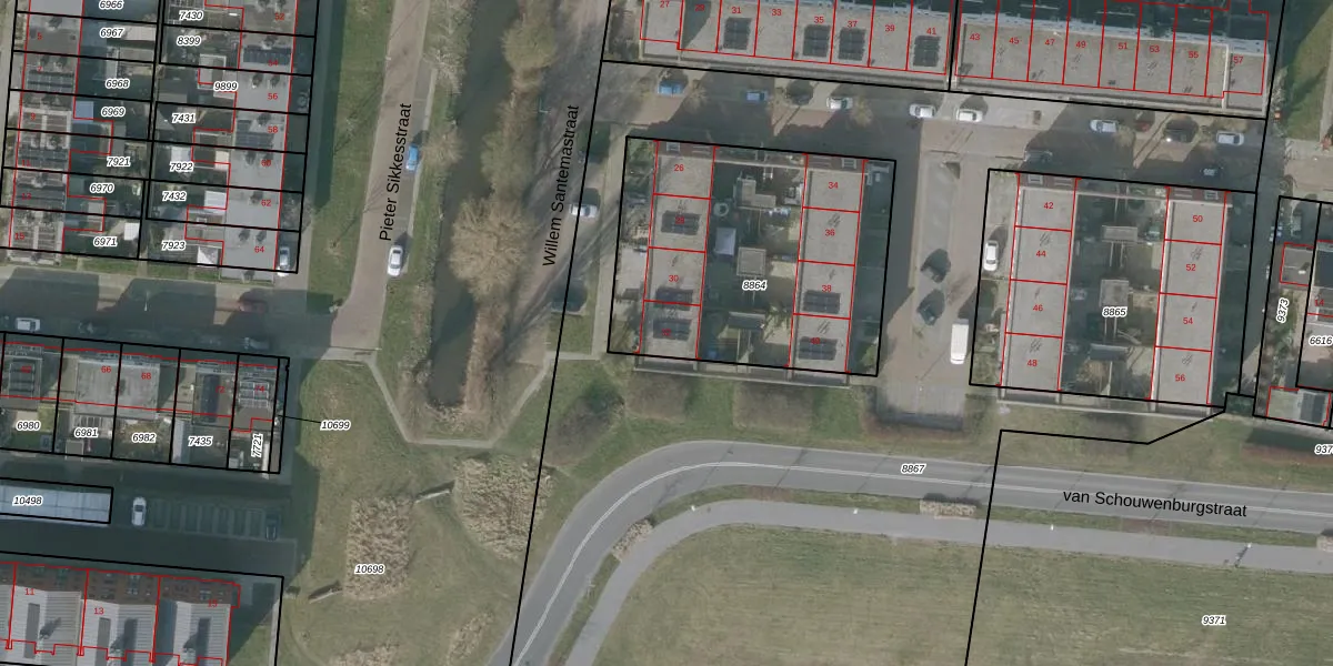 Willem Santemastraat 32 is gelegen op kadastraal perceel SNE00C8864. Deze kadastrale aanduiding is uniek en wordt gebruikt door het Kadaster om eigendomsrechten en andere zakelijke rechten vast te leggen. Het perceel maakt onderdeel uit van de kadastrale gemeente Sneek.
