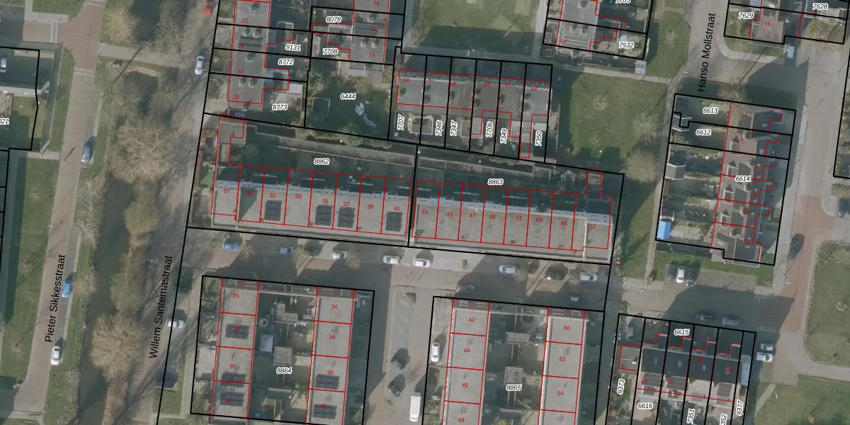 Willem Santemastraat 43 is gelegen op kadastraal perceel SNE00C8863. Deze kadastrale aanduiding is uniek en wordt gebruikt door het Kadaster om eigendomsrechten en andere zakelijke rechten vast te leggen. Het perceel maakt onderdeel uit van de kadastrale gemeente Sneek.