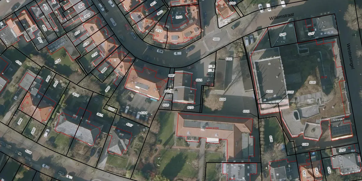 Het perceel waarop Willemstraat 1-A staat heeft een oppervlakte van 517 m². Dit is een groot perceel. De perceeloppervlakte wordt geregistreerd door het Kadaster. Gedetailleerde informatie over de maten van dit perceel kunt u vinden in het rapport Kadastrale kaart met maatvoering van Willemstraat 1-A.