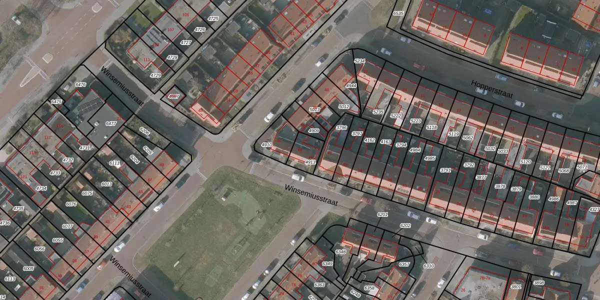 Het perceel waarop Winsemiusstraat 44 staat heeft een oppervlakte van 112 m². Dit is een middelgroot perceel. De perceeloppervlakte wordt geregistreerd door het Kadaster. Gedetailleerde informatie over de maten van dit perceel kunt u vinden in het rapport Kadastrale kaart met maatvoering van Winsemiusstraat 44.
