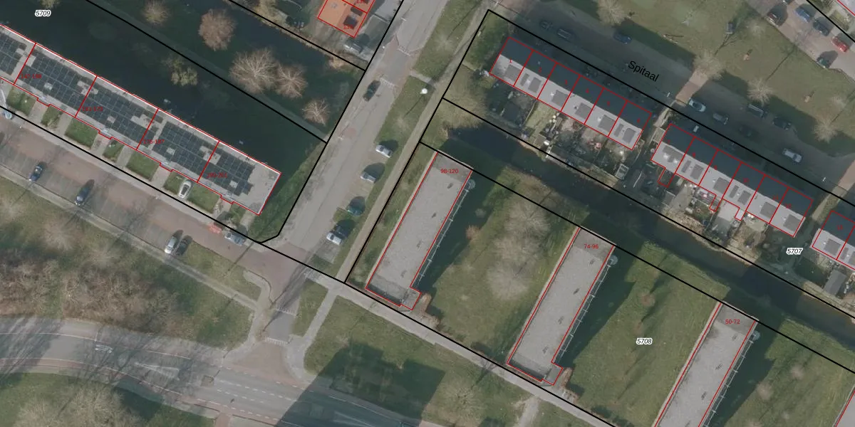 Het perceel waarop het adres ligt is SNE00-A-5708. De afkorting 'SNE00' staat voor kadastrale gemeente Sneek. Het perceel is met 6780 m² relatief groot. Het gemiddelde ligt in de kadastrale gemeente Sneek op 2093,37 m². De grootste perceeloppervlakte in de kadastrale gemeente is 61,3 ha. De kleinste oppervlakte bedraagt 0 m². Op het perceel zijn 60 adressen aanwezig. De huidige grenzen van het perceel zijn digitaal in de Basisregistratie Kadaster (BRK) geregistreerd op 28-02-2003.