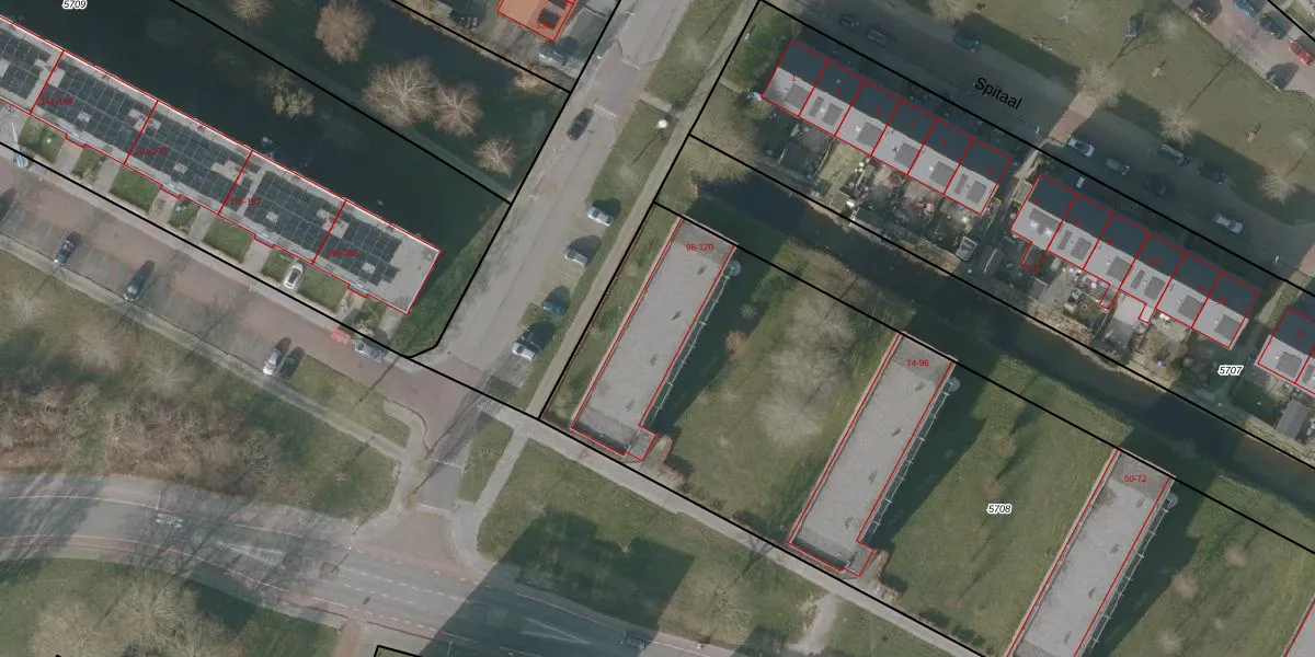 Het perceel waarop het adres ligt is SNE00-A-5708. De afkorting 'SNE00' staat voor kadastrale gemeente Sneek. Het perceel is met 6780 m² relatief groot. Het gemiddelde ligt in de kadastrale gemeente Sneek op 2093,37 m². De grootste perceeloppervlakte in de kadastrale gemeente is 61,3 ha. De kleinste oppervlakte bedraagt 0 m². Er zijn 60 adressen aanwezig op het perceel. De laatste wijziging in het de Basisregistratie Kadaster (BRK) was op 28-02-2003.