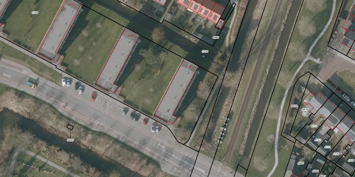 Het perceel waarop het adres ligt is SNE00-A-5708. De afkorting 'SNE00' staat voor kadastrale gemeente Sneek. Het perceel is met 6780 m² relatief groot. Het gemiddelde ligt in de kadastrale gemeente Sneek op 2093,37 m². De grootste perceeloppervlakte in de kadastrale gemeente is 61,3 ha. De kleinste oppervlakte bedraagt 0 m². Op het perceel zijn 60 adressen aanwezig. De huidige grenzen van het perceel zijn digitaal in de Basisregistratie Kadaster (BRK) geregistreerd op 28-02-2003.