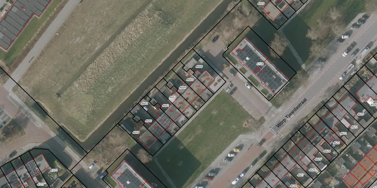 Worp Tjaardastraat 236 is gelegen op kadastraal perceel SNE00A4664. Deze kadastrale aanduiding is uniek en wordt gebruikt door het Kadaster om eigendomsrechten en andere zakelijke rechten vast te leggen. Het perceel maakt onderdeel uit van de kadastrale gemeente Sneek.