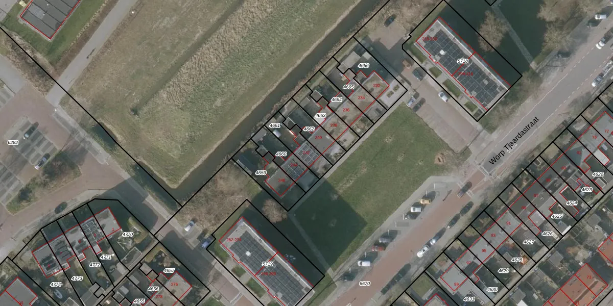 Worp Tjaardastraat 242 is gelegen op kadastraal perceel SNE00A4661. Deze kadastrale aanduiding is uniek en wordt gebruikt door het Kadaster om eigendomsrechten en andere zakelijke rechten vast te leggen. Het perceel maakt onderdeel uit van de kadastrale gemeente Sneek.