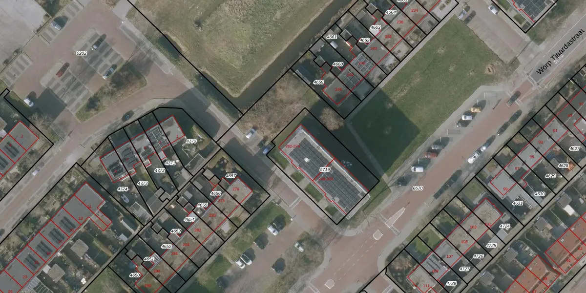 Worp Tjaardastraat 262 is gelegen op kadastraal perceel SNE00A5719. Deze kadastrale aanduiding is uniek en wordt gebruikt door het Kadaster om eigendomsrechten en andere zakelijke rechten vast te leggen. Het perceel maakt onderdeel uit van de kadastrale gemeente Sneek.