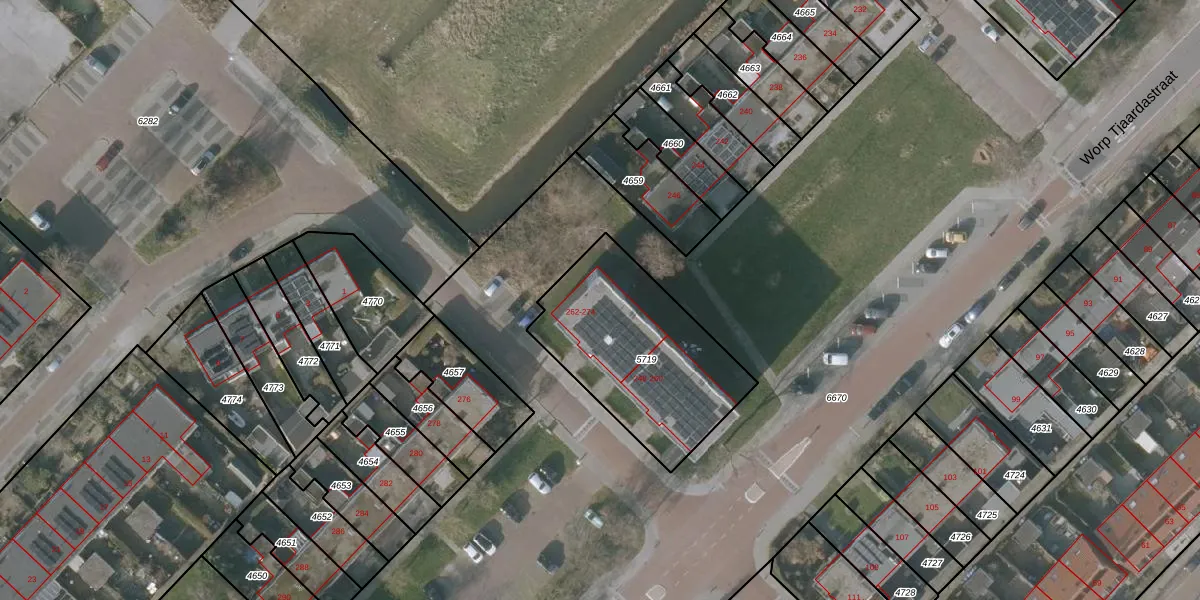 Worp Tjaardastraat 270 is gelegen op kadastraal perceel SNE00A5719. Deze kadastrale aanduiding is uniek en wordt gebruikt door het Kadaster om eigendomsrechten en andere zakelijke rechten vast te leggen. Het perceel maakt onderdeel uit van de kadastrale gemeente Sneek.