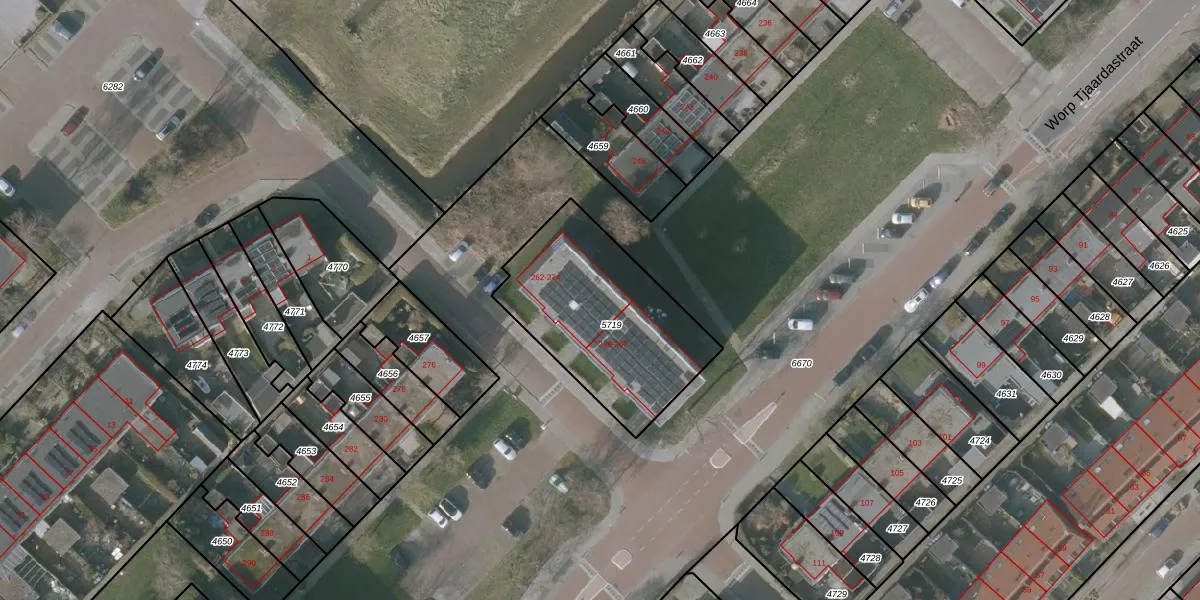 Worp Tjaardastraat 274 is gelegen op kadastraal perceel SNE00A5719. Deze kadastrale aanduiding is uniek en wordt gebruikt door het Kadaster om eigendomsrechten en andere zakelijke rechten vast te leggen. Het perceel maakt onderdeel uit van de kadastrale gemeente Sneek.